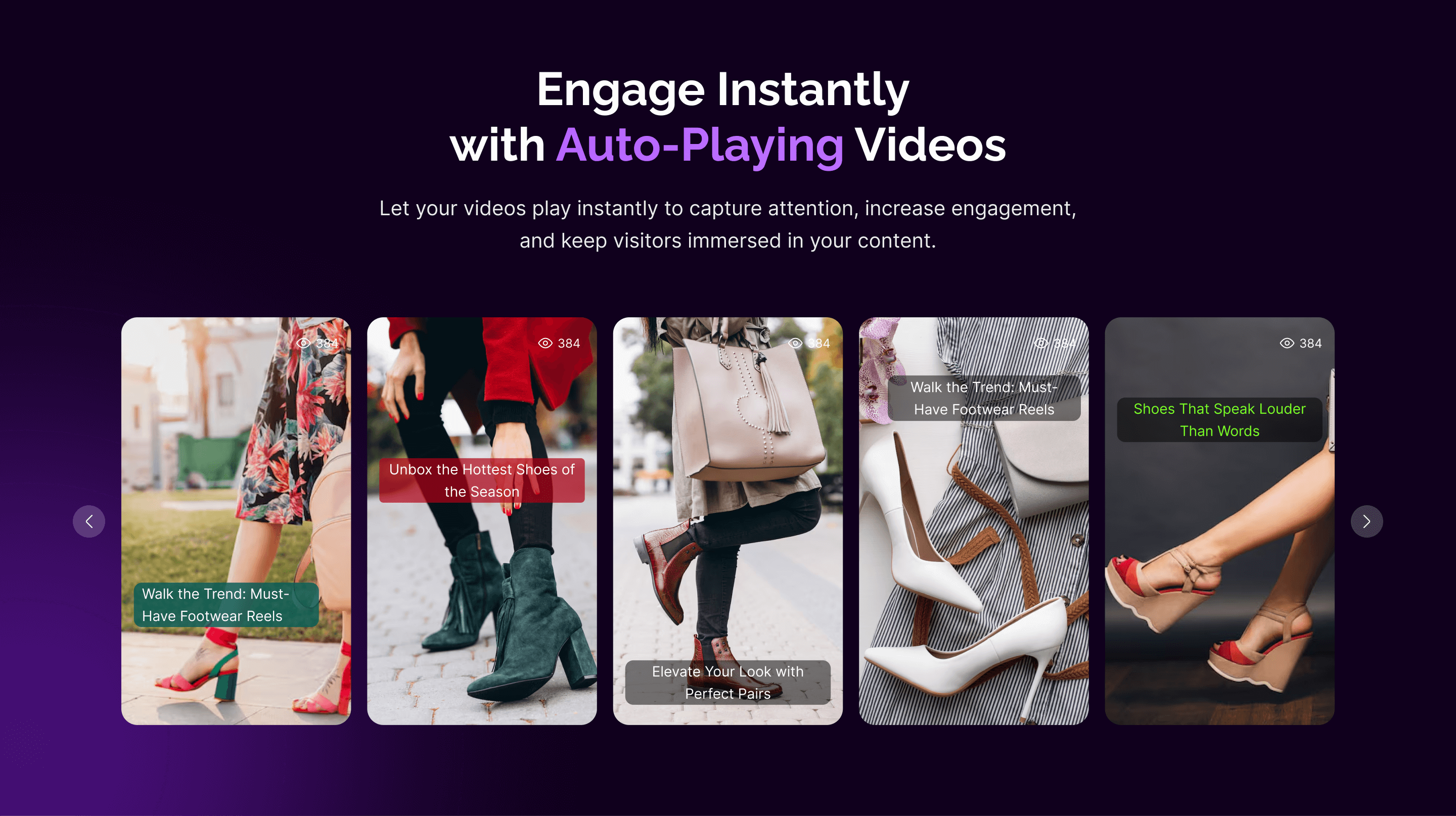 - Shoppable Videos : Make shopping even easier by adding shoppable videos directly on your website. Customers can click on items in the video and purchase them instantly directly from the video.