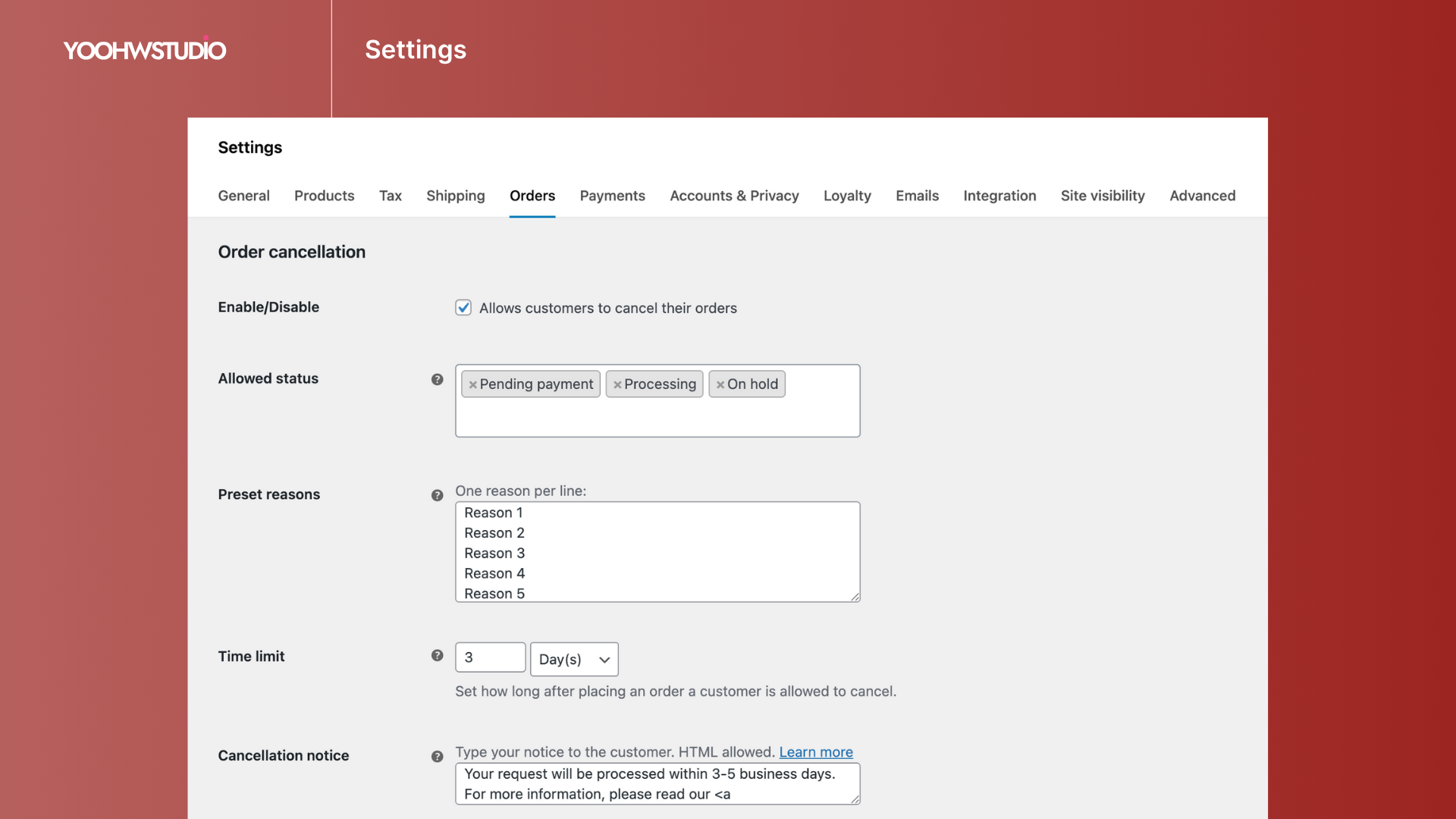 - Cancellation/Return Timer: Set a time limit for cancellations or returns, ensuring you stay in control of the process.